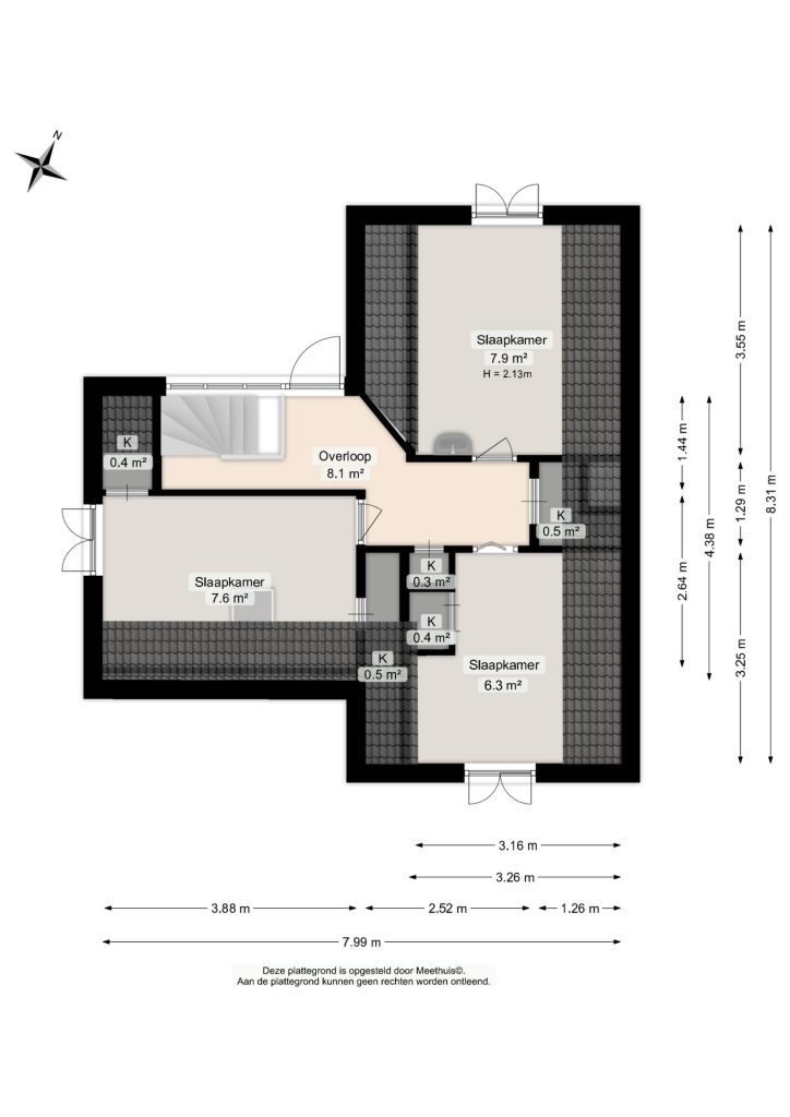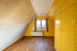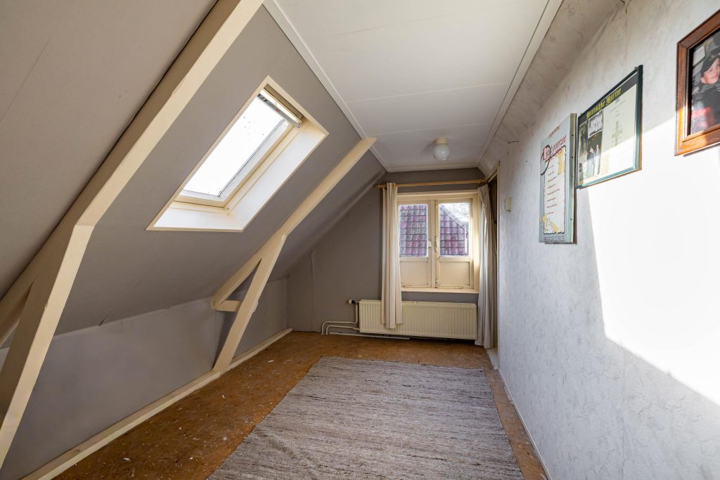 Middels een vaste trap te bereiken overloop 8 m2 met 3 vaste kasten; slaapkamer 7,5 m2 met een inloopkast en de omvormer t.b.v. de zonnepanelen; slaapkamer 6,5 m2 met een vaste kast; slaapkamer 8 m2 voorzien van een wastafel.