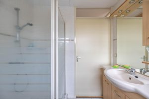 Overloop met trapopgang; 3 slaapkamers, resp.: 15, 9 en 8 m2 (alle slaapkamers zijn voorzien van een laminaatvloer); badkamer 4 m2 met toilet, wastafelmeubel en een douchecabine.