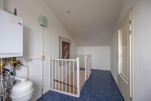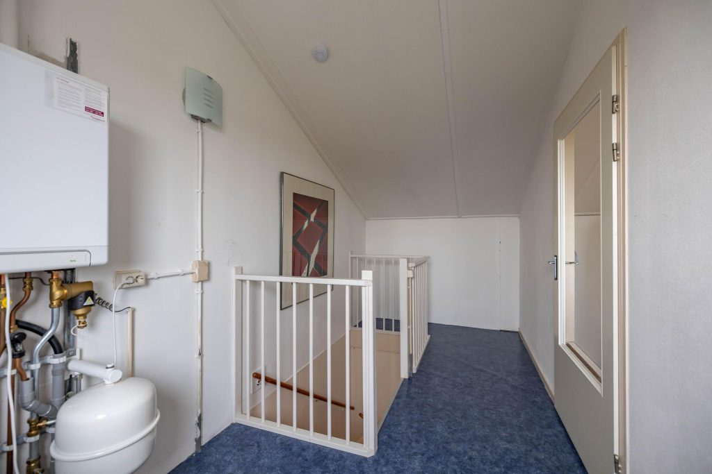 2de VERDIEPING: Te bereiken via een vaste trap; overloop 10 m2 met de plaats van zowel de CV-installatie, wasmachine als de mechanische ventilatie unit; extra slaap/hobbykamer 14 m2 met een deur naar extra bergruimte.